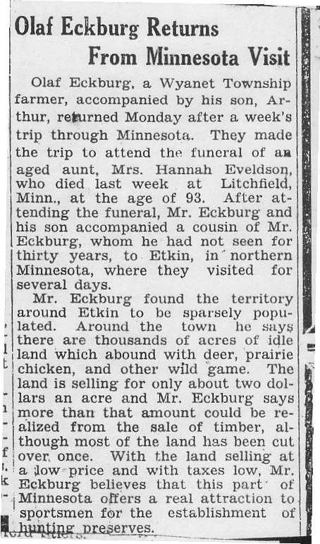 The cousin Olof Eckberg visited was probably Olof Lindquist.